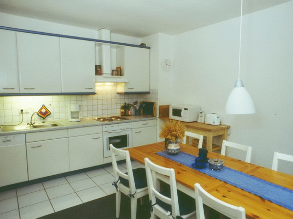 Mikrowelle, E-Herd, Backofen, Kühlschrank mit Gefrierfach), Wohnraum mit Kachelofen, SAT-TV,