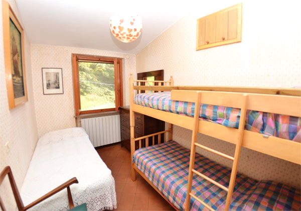 Zugang zum 1. Stock (gleichzeitig auch Erdgeschoss, da das Gelände in Terrassen angelegt ist und das Haus Hanglage hat), Veranda mit Tisch, Stühlen. Grosses Wohnzimmer mit Sofa und 2 Sesseln, Esstisch, Wohnküche mit grossem Tisch, Herd, Ofen, Kühl-Gefrierschrank, Geschirrspüler, Ausgang auf die Hinterseite des Hauses, 1 Badezimmer mit Dusche, WC, Bidet, 1 Doppelbettzimmer. 2. Stock: 1 Doppelbettzimmer mit 1 Stockbett, 1 Zimmer mit 1 franz. Bett (1.40m), 1 Einzelbettzimmer mit 1 zusätzlichen Stockbett, 1 Badezimmer mit Dusche, WC, Bidet. Das Haus ist sehr gemütlich und hell, ausgestattet mit Kinderbett und Hochstuhl. Im Erdgeschoss ein Raum mit Waschmaschine und Holzofen. Parkplatz in der Nähe des Hauses.