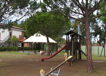 Die Bungalows bilden ein kleines, hübsches Feriendorf ohne Autoverkehr. Die Fahrzeuge werden auf dem großen Parkplatz abgestellt und zum Ein- und Ausladen gibt es kleine Transportwagen. Neben dem großen Pool mit Kinderpool (Badekappenpflicht), einem Spielplatz und weiteren Sportmöglichkeiten auf dem Gelände wie dem Fitnessraum (Tecnogym-Geräte), Tennis, Fußball, Volleyball, Tischtennis, Gymnastik, Boccia und Bogenschießen, einen Spielraum für Kinder von 18 Monaten bis 5 Jahre (in Begleitung der Eltern), gibt es auch noch eine mehrsprachige Kinderanimation und einen Shuttle-Service an den Strand während der Hochsaison. Außerdem: Restaurant mit großer Terrasse (auch Pizzeria), Bar, Minimarkt, Tabakladen, Münzwaschmaschinen und gratis Internet (WIFi in den