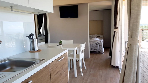 Moderne Bungalows/Mobile Homes auf einem ca.7-Hektar-großen Landgut, mit Oliven- und einigen Obstbäumen. Auf einem Spaziergang durch den Olivenhain gelangen Sie zu den Tieren des Anwesens wie Hühner, Esel und Pony.
