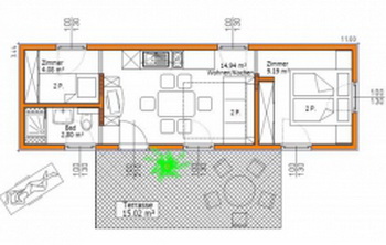 Typ B Ferienhaus, bis 4 (6) Personen, 32 qm